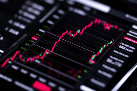 Detailed shot of a stock chart with market trends and performance metrics displayed on a tablet or laptop