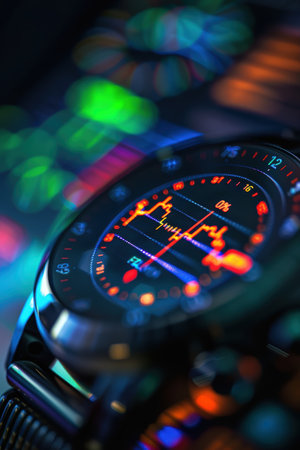 Futuristic control panel showing performance indicators with glowing lights
