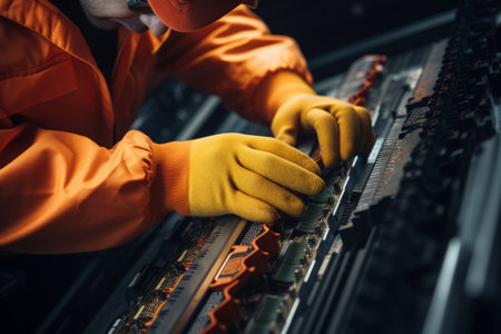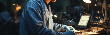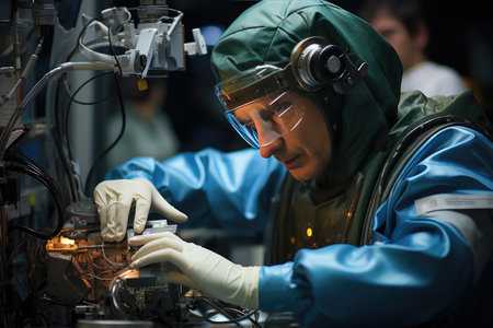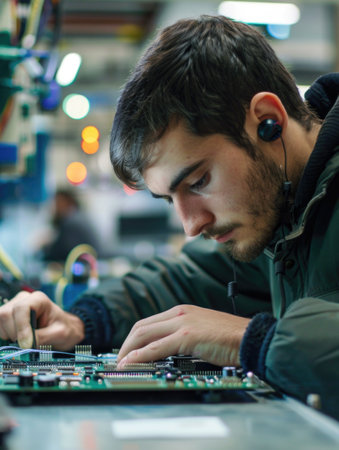 Technician working on a microcircuit in a factory ai generated