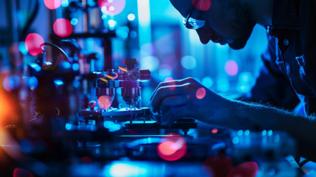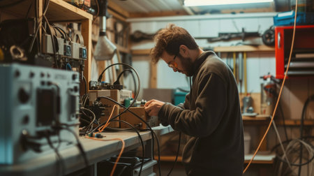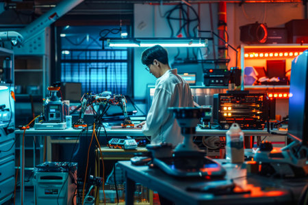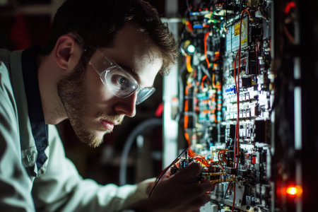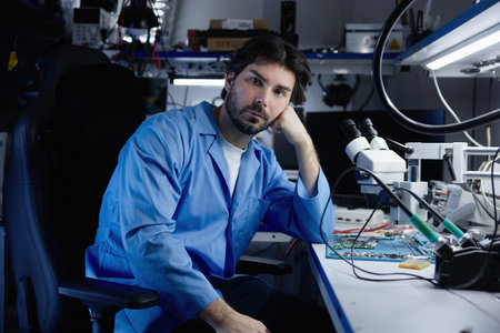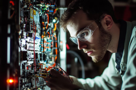 Dedicated and focused engineer working in a laboratory setting on advancements in electronics