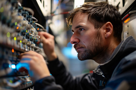 Male engineer working on complex machinery, showcasing precision and expertise.