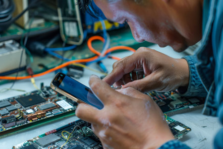 A phone technician repairing a smartphone screen highlighting electronic repair skills