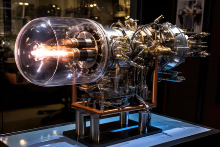 hypersonic engines on display with blueprints, created with generative ai