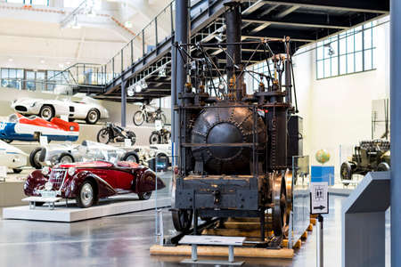 MUNICH, GERMANY - NOVEMBER 26, 2018: The German Museum of Science and tors. Technology Achievement represents the exposure of old mechanisms for the production of energy steam engines, windmills, electric