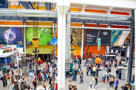 Plzen, Czech Republic - Oct 28, 2019: Interior of the Techmania Science Center in Pilsen, Czechia. Exhibitions explaining scientific principles to children by games. Education, educational center.