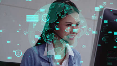 Customer support call center provide data in conceptual vision . Business and communication technology concept .