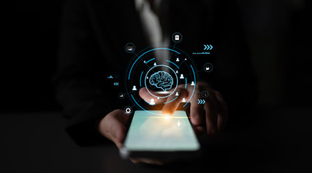 AI with Digital Brain is learning processing big data, analysis information. technology background concept. Artificial Intelligence Machine Learning Business Internet Technology Concept