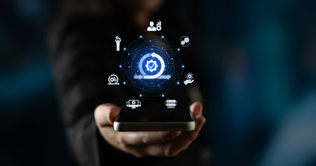 smartphone with fingerprint scanner in hand on dark background 3d rendering