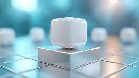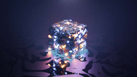 Cube with blue moving blocks. Science fiction technology design. 3D render illustration