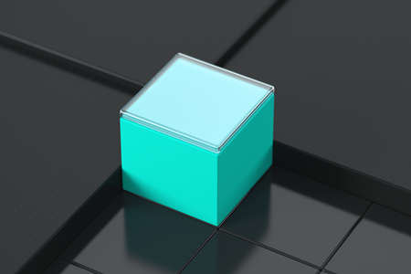 3D Cube on Black boxes Background 3D Render illustration. Trading Stock Exchange Financial Report concept.