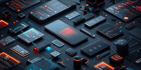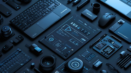 modern tech devices featuring a central gadget and various accessories