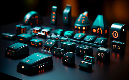 Futuristic technology scene. Intricately designed computer components in a high-tech setting, highlighted by vivid colors.