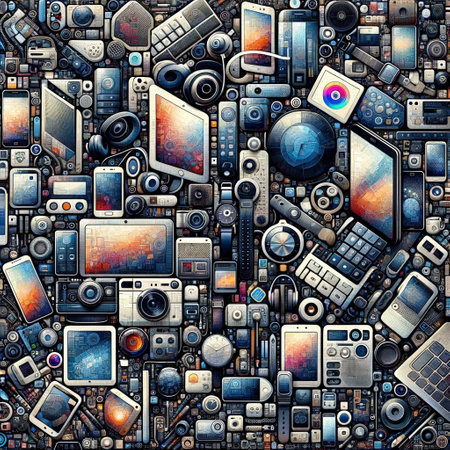 Collage of Various Electronic Devices: A Vibrant Abstract Texture