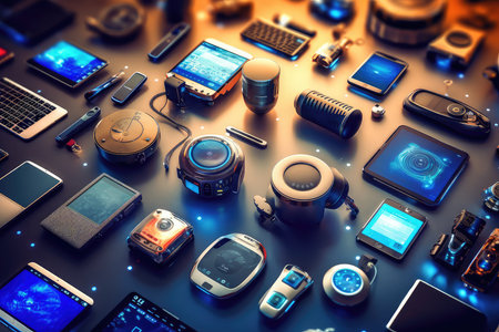 This collection features a range of futuristic technology devices with a sleek design, showcasing vibrant displays and innovative gadgets suited for modern lifestyles.