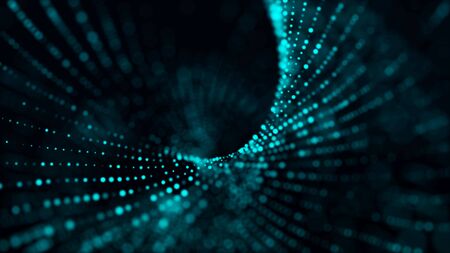 Abstract particle vortex. Futuristic dynamic wave moving in space. Explosion of data. 3d rendering.