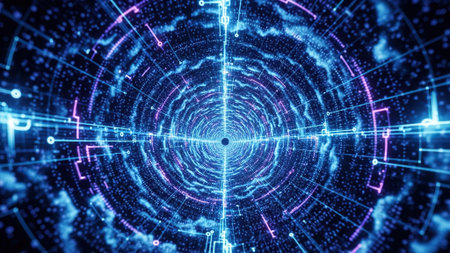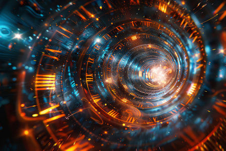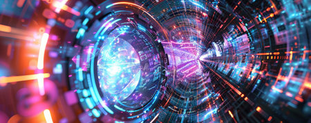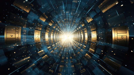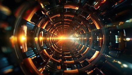 Vibrant abstract tunnel in space showcasing concept of relativity. Time-warp tunnel illustrating the impact of speed and gravity on the passage of time