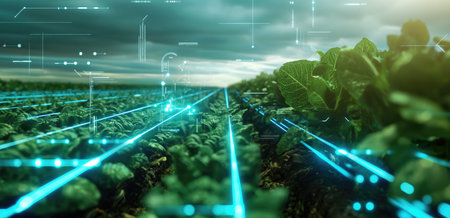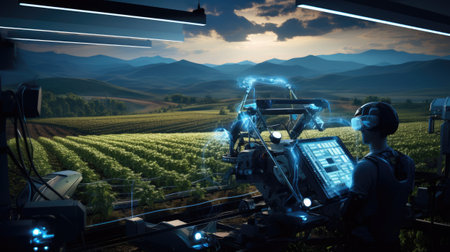 Technology in Agricultural field, cultivated and plantation with futuristic smart objects.