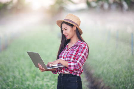 Inspection of vegetable garden quality by farmers using modern agricultural technology concepts.