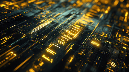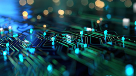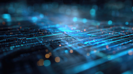 Futuristic circuit board with blue lights symbolizing cuttingedge technology, innovation, and advanced data processing