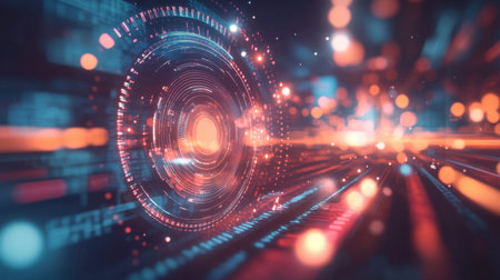 Vibrant abstract digital background featuring glowing circles and flowing lines. Perfect for themes of technology and science with a futuristic aesthetic.