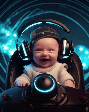 Futuristic baby in a tech capsule representing the intersection of technology and life, showcasing innovation and potential