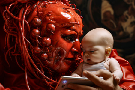 An eerie image depicting a demon holding a baby, symbolizing dark dreams and malevolence.