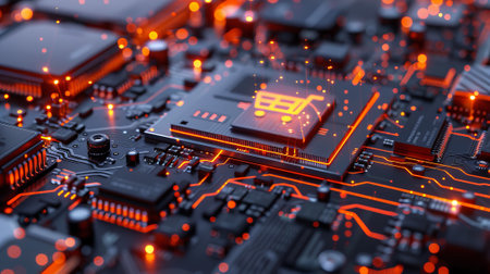 A computer chip with a shopping cart on it