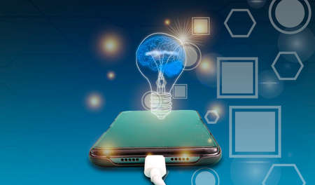 Smartphones, Knowledge Sources, Illumination, Brain. Online Learning Concept.
