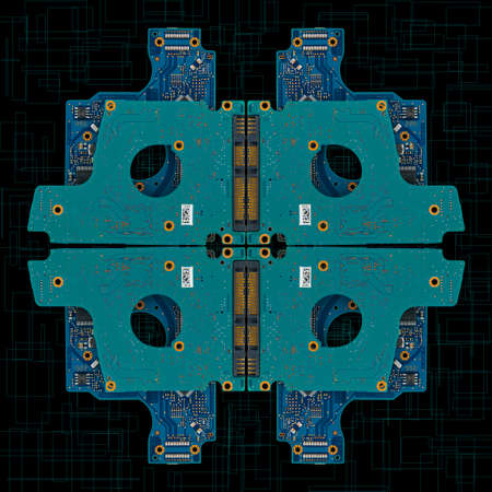 Hard disk boards in cross composition with rectangular shapes background