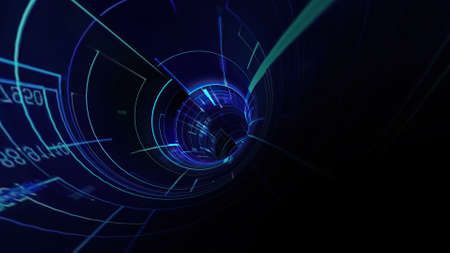 Travel through virtual digital hi-tech tunnel 3d illustration