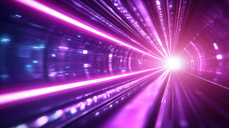 Immersive AI-generated neon lights speed tunnel background showcasing vivid gradients of blue, pink, and purple in a sleek, futuristic design. Perfect for tech, sci-fi, and digital projects.