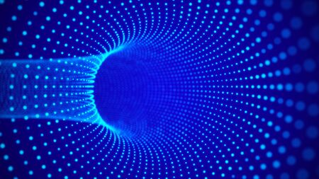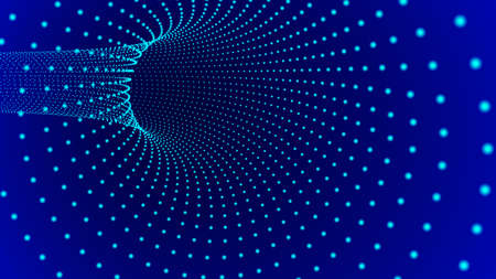 Vector blue tunnel with dots. 3d wormhole dark illustration.
