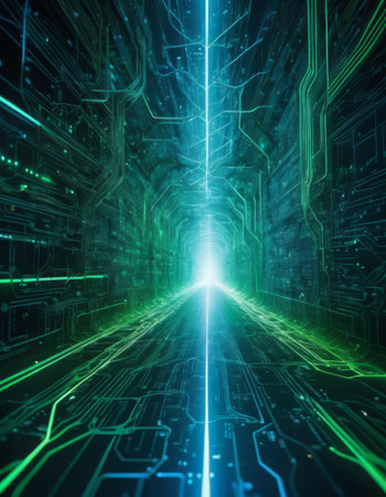 Futuristic Green Data Tunnel