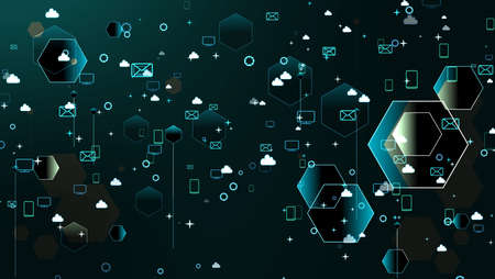 Abstract polygon futuristic relations of hexagons with social media icon cloud email TV computer background