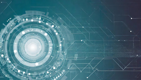 This abstract backdrop features a glowing digital circuit design that radiates vibrant colors against a dark background, evoking a sense of advanced technology and innovation.