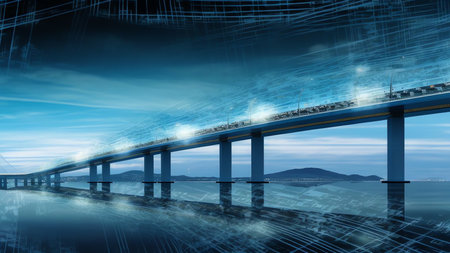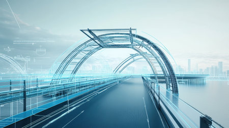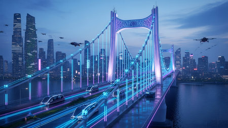 A modern bridge integrates advanced digital technology, improving transportation efficiency in the urban environment.