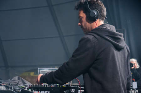 Dj live electronic concert, Dee jay in the stage in electronic music festival