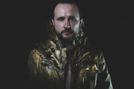 Freedom, man beard and suit made with golden wings