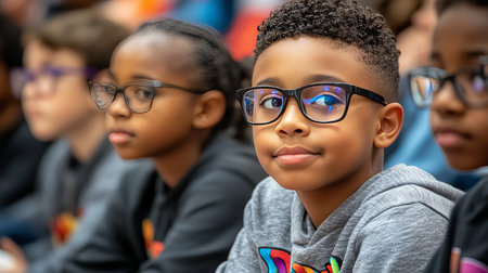 Young Students Engaged in Literature with Excitement, Classroom Filled with Eager Faces and Joy.
