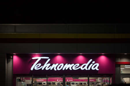 BELGRADE, SERBIA - JANUARY 17, 2021: Tehnomedia Logo in front of their shop for Belgrade. Tehnomedia is a Serbain chain of electronics, technology and appliances retailer spread in the country.