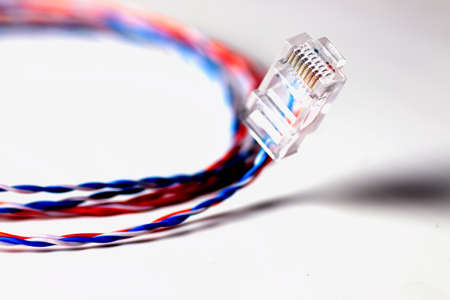 LAN network connection ethernet red cables on white