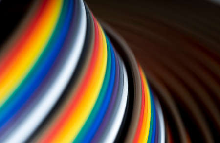 Cable and wires rainbow colored blurred close-up, macro shot, Texture or background. wires color background