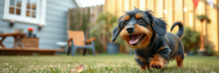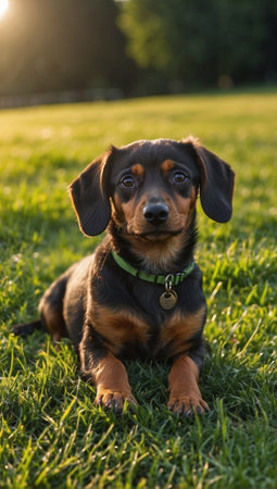 AI Generated. Adorable Black and Tan Dachshund Puppy Sitting