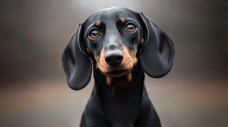 A Charming Close-Up of a Black Smooth Haired Miniature Dachshund with an Expressive Puppy Face