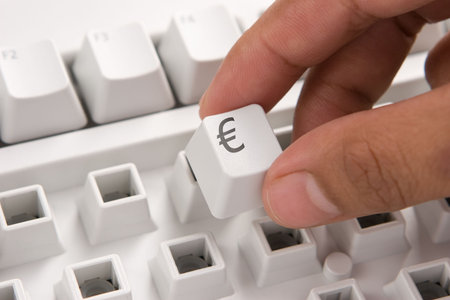 E-commerce, e-banking concept. EU euro banknotes on computer keyboard