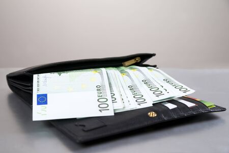 100 Euro banknote on a dark background. Close up. The concept of savings