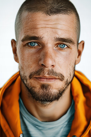 Hungary thrifty man, close-up portrait, professional photoshoot, isolated on white background