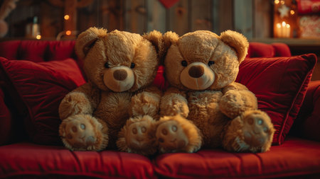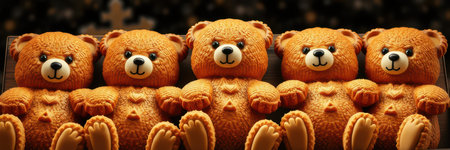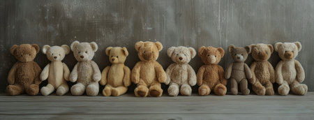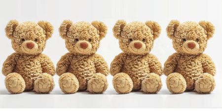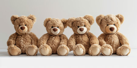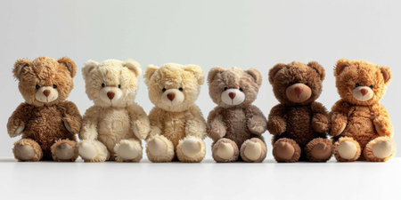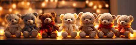 Plush teddy bears arranged in a row showcasing their warmth and charm during a cozy indoor evening