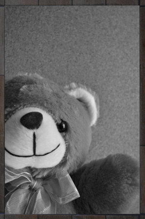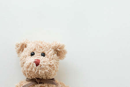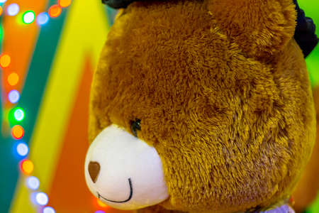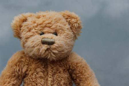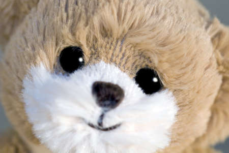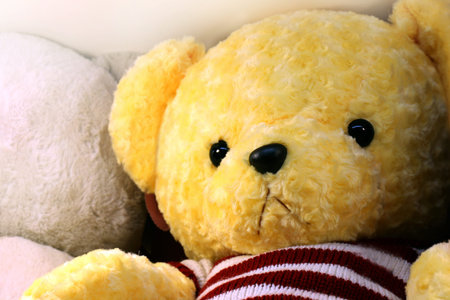 doll cute teddy bear yellow face close up, little bear doll, face teddy bear (selective focus)