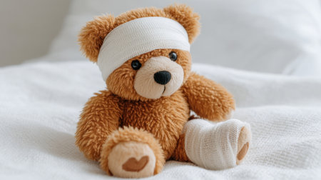 This charming teddy bear with bandages evokes feelings of comfort and care, making it ideal for themes of healing, childhood innocence, and emotional support.